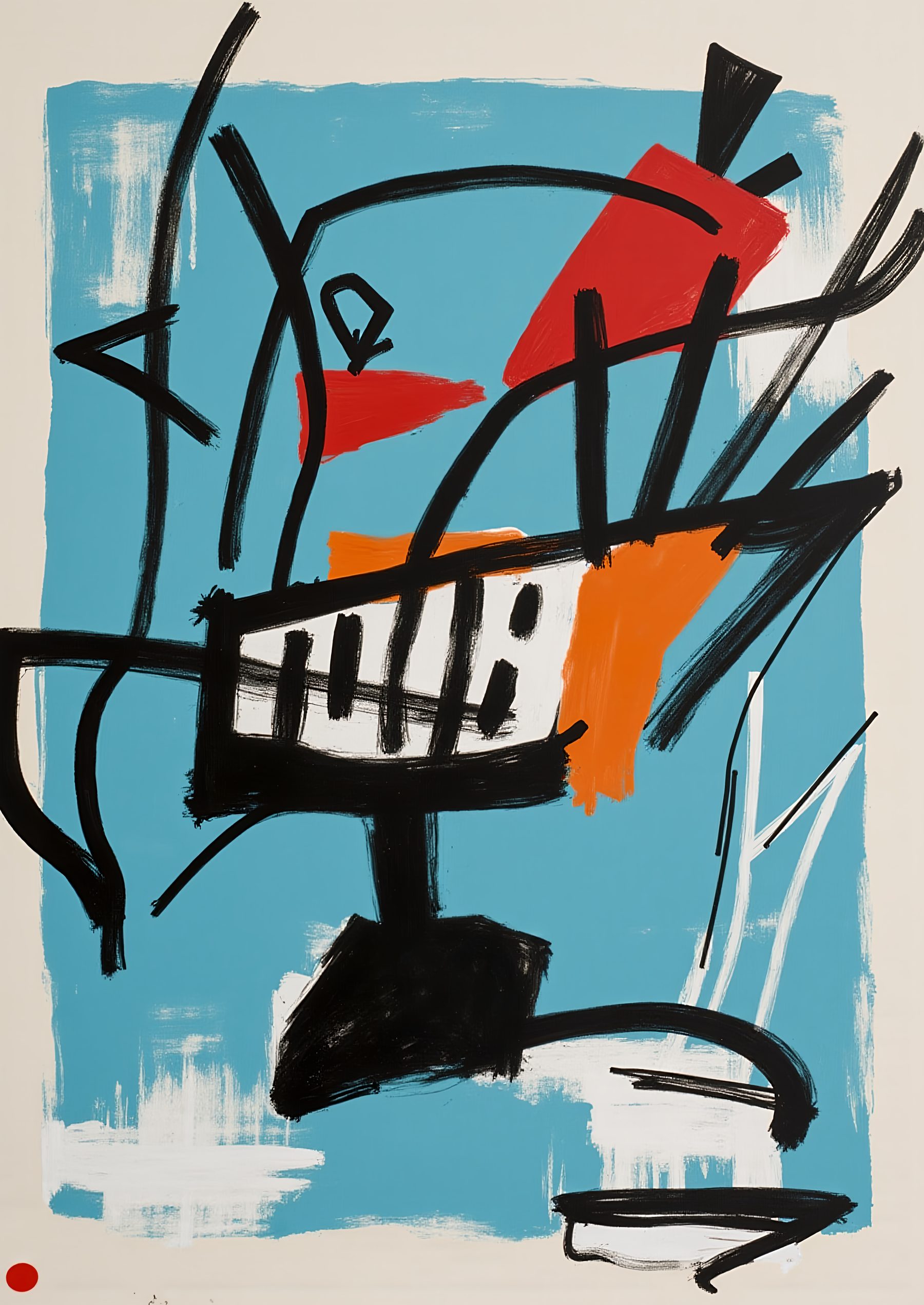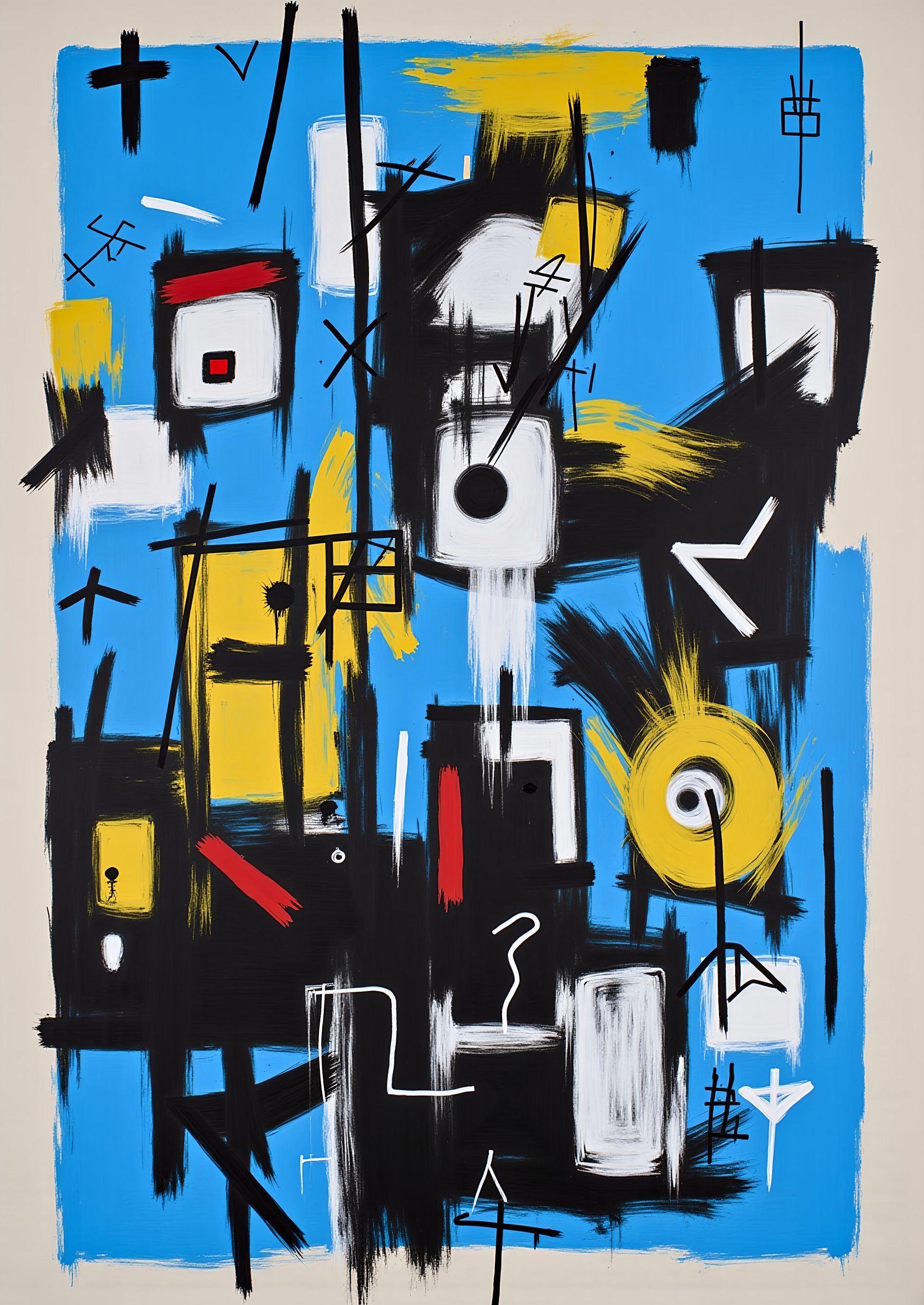 A trained model refines and synthesises — structured generative logic meets expressive painterly abstraction.
